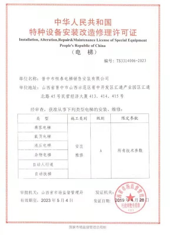 版權所有:晉中市恒泰電梯銷售安裝有限公司    電話:0354-3073280